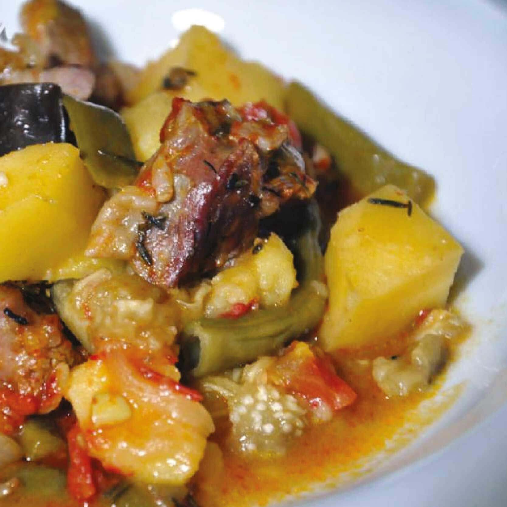 Kuru fasulye, pilav, karalahana sarması, dana kavurma, fasulye turşu kavurma